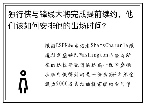 独行侠与锋线大将完成提前续约,他们该如何安排他的出场时间?